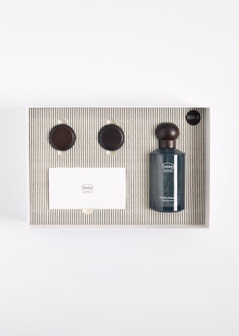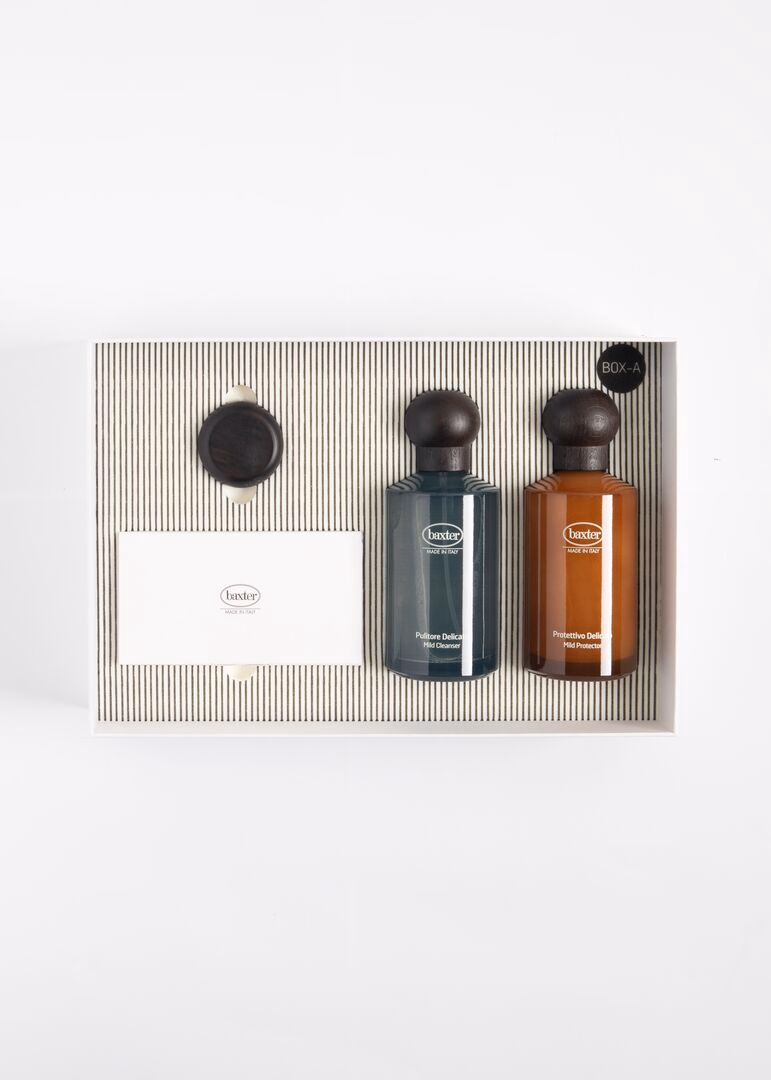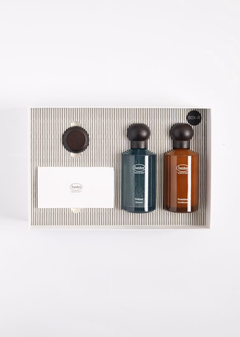 Tutti i prodotti sono stati appositamente studiati e testati in esclusiva per le pelli Baxter. Si consiglia di utilizzare esclusivamente i prodotti per la manutenzione forniti da Baxter. Prodotti generici possono essere causa di danni permanenti al rivestimento. Per la riuscita del trattamento è importante che venga eseguito con costanza e almeno ogni sei mesi, per rimuovere lo sporco così come il graduale accumulo dovuto alla traspirazione e ai grassi del corpo. I depositi che non vengono rimossi per periodi più lunghi possono diventare particolarmente tenaci e i successivi trattamenti potrebbero non raggiungere il risultato desiderato