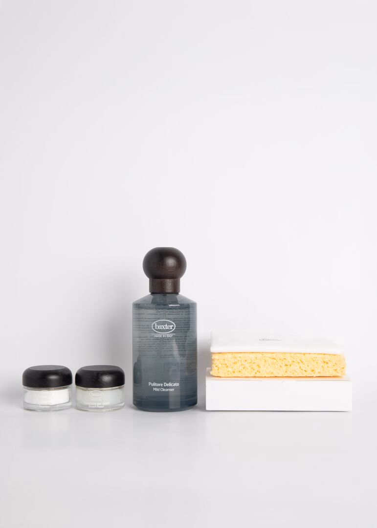 Pulitore a base acquosa creato per pulire con gentilezza, ma in modo efficace, le macchie più comuni che si formano con l’uso. Pre-Test: prendere un panno morbido bianco e inumidire con acqua. Tamponare delicatamente la pelle in una parte nascosta e controllare se ha ceduto colore al panno. Se non c’è trasferimento di colore sul panno, applicare il Pulitore Delicato in un’area nascosta, dopo aver ben agitato la bottiglia. Se la pelle scurisce dopo l’asciugatura o c’è scolorimento o non siete completamente soddisfatti del risultato, interrompere l’utilizzo. Modalità d’uso: pulire la pelle utilizzando un panno pulito o una spazzola morbida. Agitare bene il flacone. Per ottenere una buona pulizia, spruzzare il Pulitore Delicato sul Panno Morbido (Box A) o sulla Spugna Naturale (BOX C) e pulire con movimenti leggeri e circolari. Non strofinare aggressivamente. Lasciare asciugare naturalmente. Dopo aver pulito, rinnovare la protezione applicando, in modo uniforme e su tutto l’articolo in pelle, il Protettivo Delicato (solo Box-A). Applicare il Pulitore Delicato quando richiesto o 6-12 volte l’anno nelle parti usate con maggiore frequenza. Precauzioni d’uso: Tenere fuori dalla portata dei bambini. Evitare il contatto con gli occhi o la pelle. In caso di contatto, lavare abbondantemente con acqua. Non ingerire. Lavarsi le mani dopo l’uso.